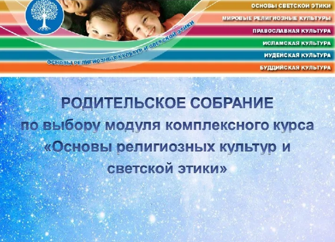 состоится собрание по вопросу выбора родителями (законными представителями) модуля комплексного курса ОРКСЭ («Основы религиозных культур и светской этики»), который будет изучаться в 4ом классе.