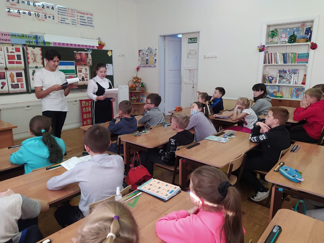 Ученики 10 а класса (члены музейного кружка «Мирас») выступили перед ребятами начальной школы с лекцией на тему: «11 октября – День моей Республики!»