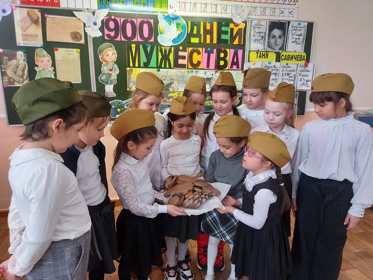 В рамках акции «Блокадный хлеб» в 1-11-х классах прошли Уроки Мужества, классные часы, внеклассные мероприятия, которые позволяют сегодняшнему поколению выразить благодарность за подвиг мирных граждан в годы Великой Отечественной войны. В начальной школе прошли классные часы «Блокадный хлеб: символ жизни и надежды ». Цель: расширить представления детей о героическом подвиге жителей Ленинграда; формировать чувство патриотизма.