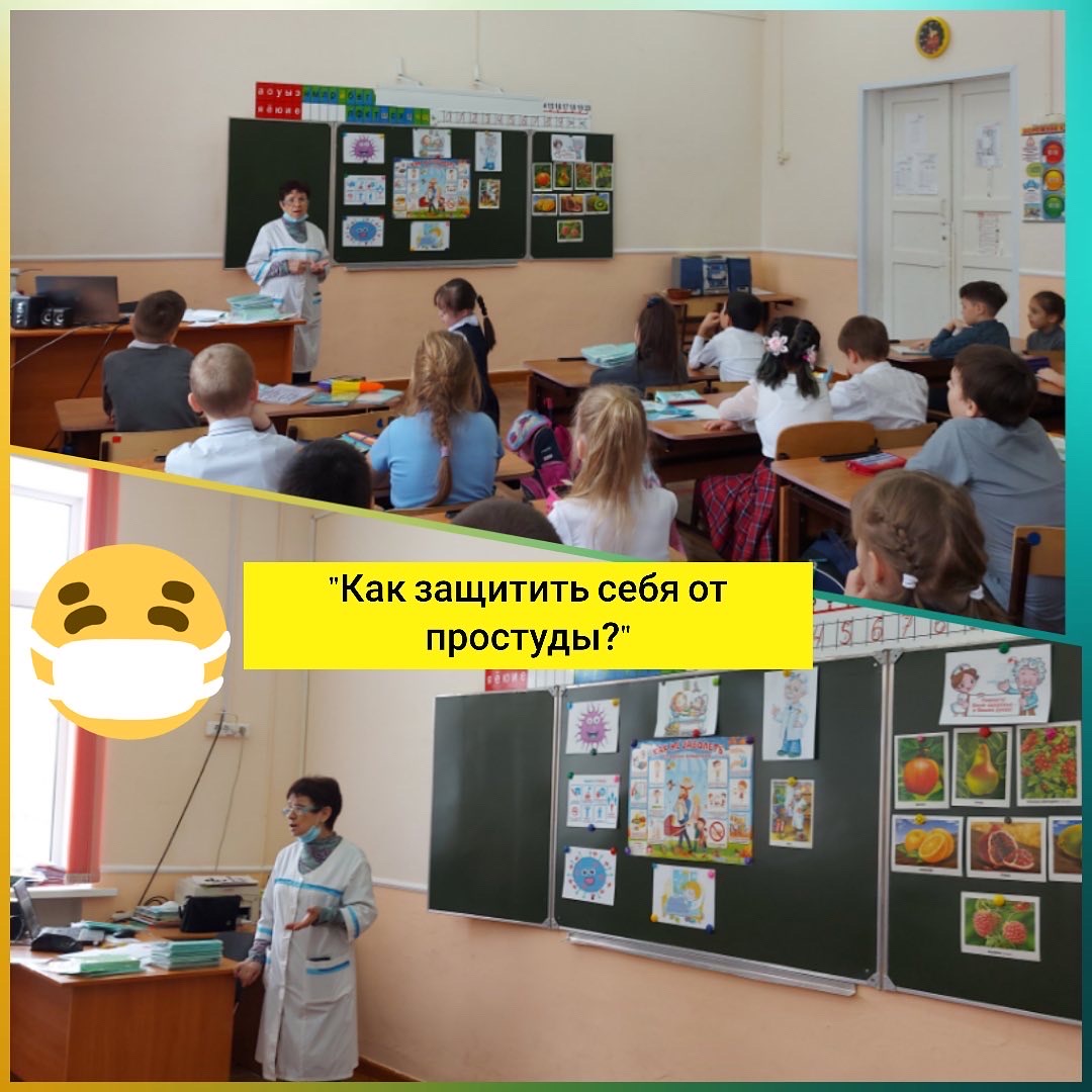 В рамках месячника начальных классов во 2 Б классе состоялась встреча с медицинским работником Муратшиной Р.С. на тему:"Как защитить себя от простуды?".