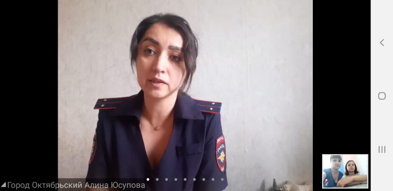В этот день с утра прошли онлайн уроки безопасности дорожного движения во всех классах школы. К ученикам 4 Б класса и их родителям была приглашена на беседу ответственный работник за мероприятия по профилактике детского травматизма – инспектор по пропаганде БДД ОГИБДД ОМВД Росси по г. Октябрьскому лейтенант полиции Алина Равилевна Юсупова, которая напомнила ребятам и родителям правила пешехода, пассажира. Познакомила со статистикой дорожно-транспортных происшествий с участием детей. Назвала основные причины трагедий.